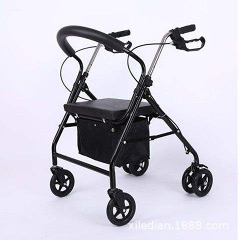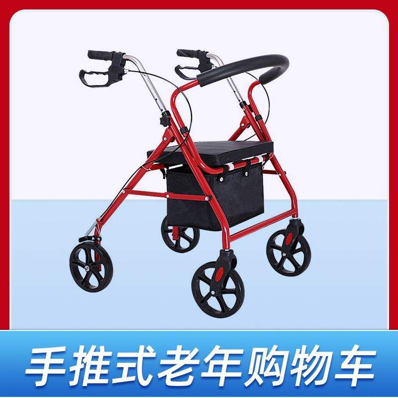 Andador Plegable Ligero de Cuatro Ruedas con Asiento para Personas Mayores, Carrito de Compras con 4 Ruedas de PU