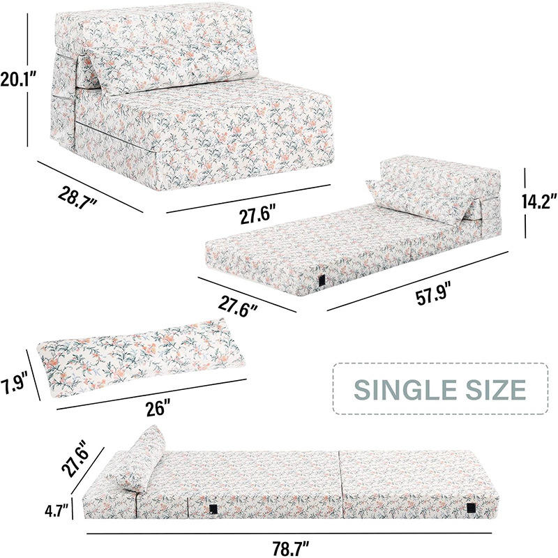 Colchón plegable de espuma viscoelástica con funda extraíble para uso en dormitorios, camas o siestas en el suelo.