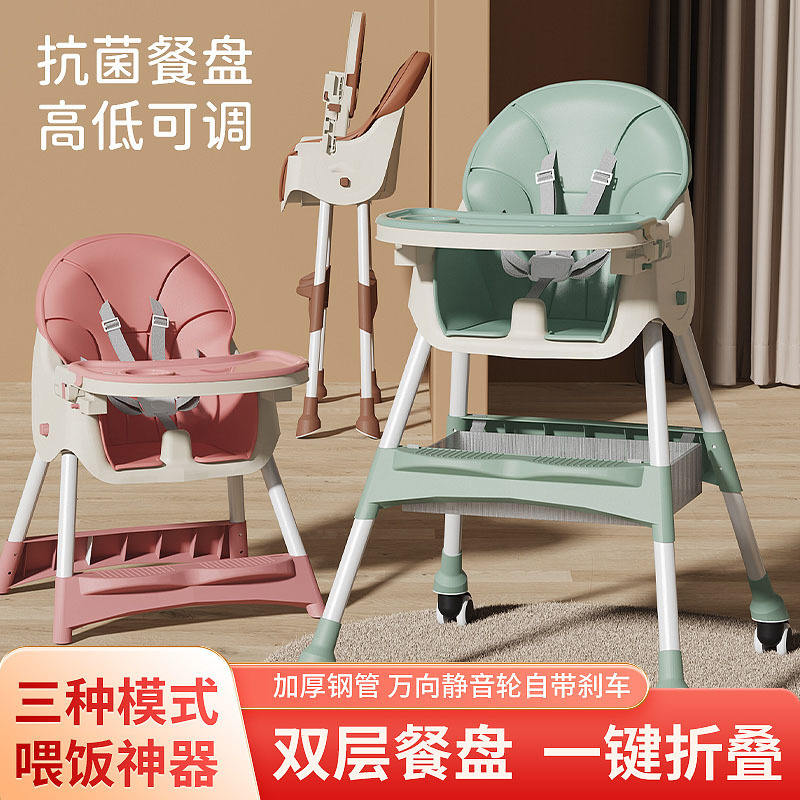 Silla alta plegable multifuncional para bebé, ajustable en altura, portátil, con bandeja y cesta de almacenamiento para 0 a 12 meses