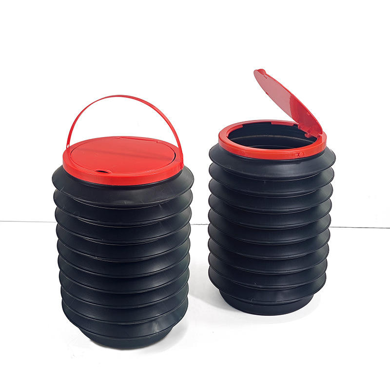 Bote de Basura Plegable de Plástico de 4L con Tapa, Bote de Basura Portátil para Auto, Redondo, Negro, Impermeable, con Asa