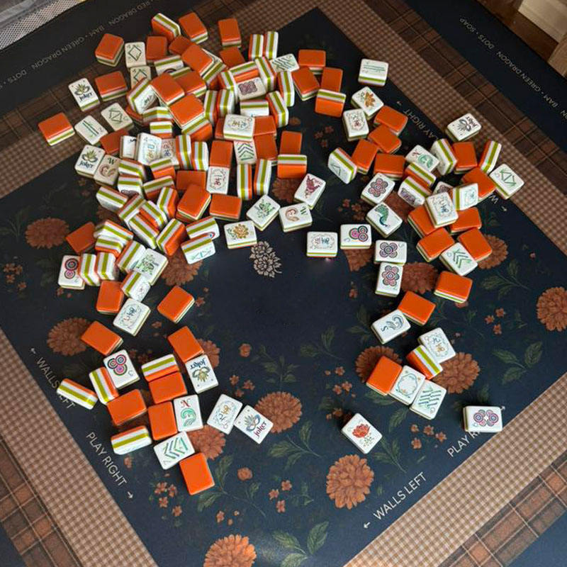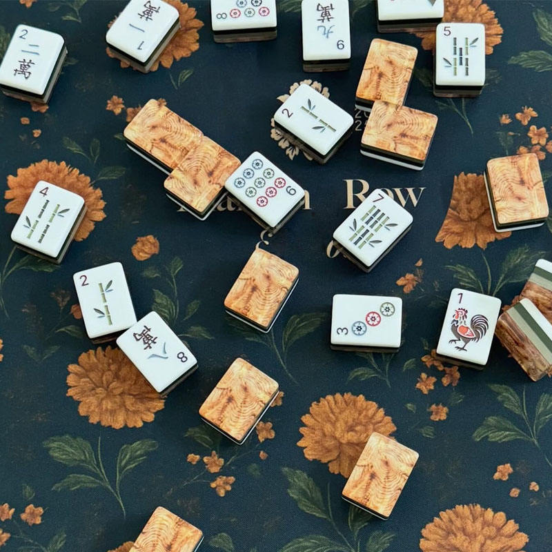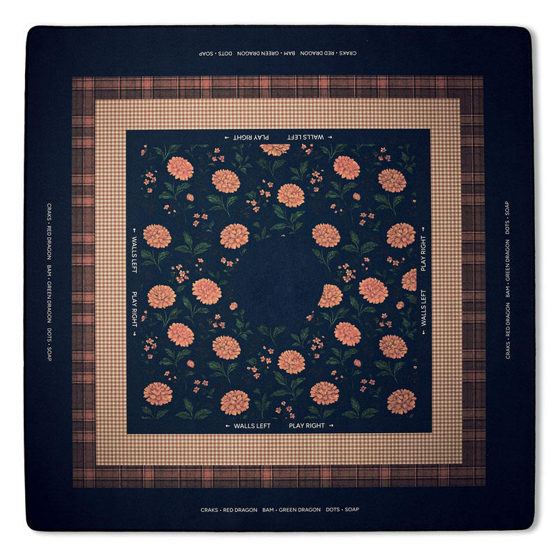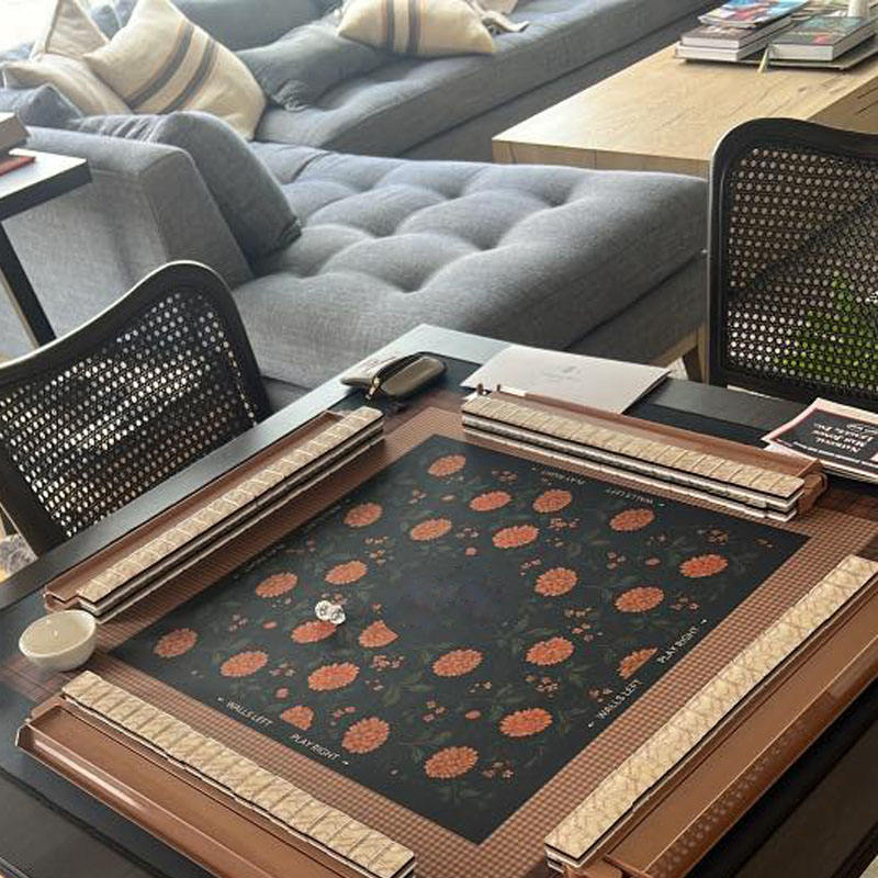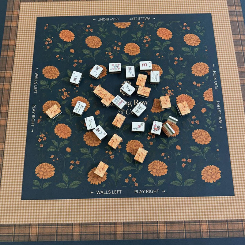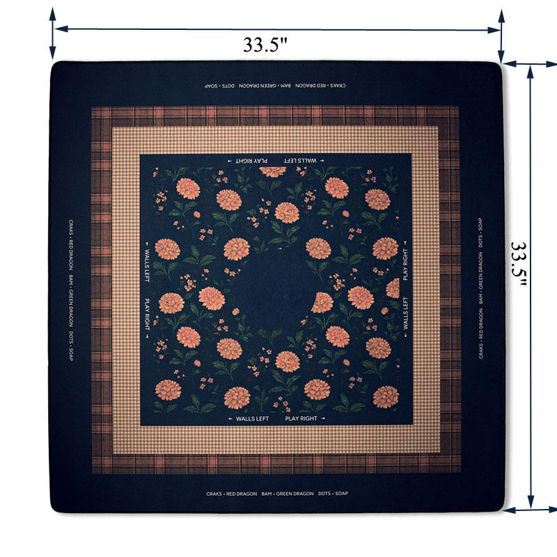 Tapete Plegable Portátil para Mahjong de 33.5x33.5 Pulgadas | Base de Goma Antideslizante Reductora de Ruido | Diseño Floral Azul Marino para Cartas de Mahjong