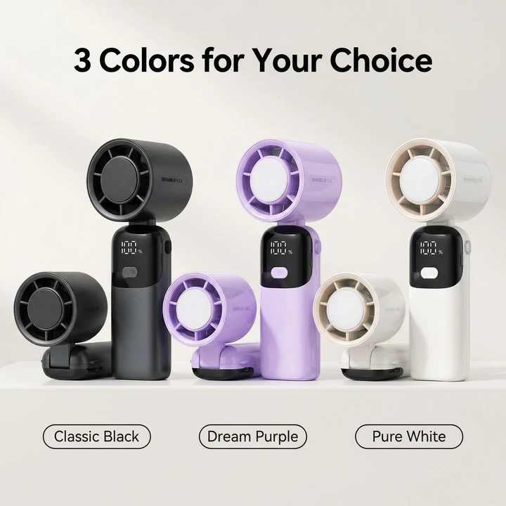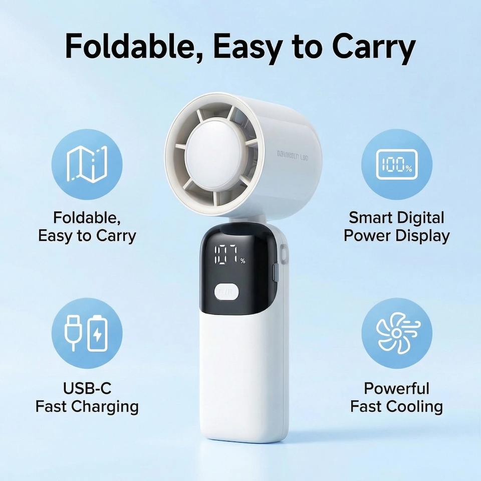 Ventilador de Mano Recargable Plegable de 2400 mAh, USB, para Uso en el Hogar y el Automóvil, Motor sin Escobillas, Ligero, de Plástico de Alta Calidad, Semiconductor