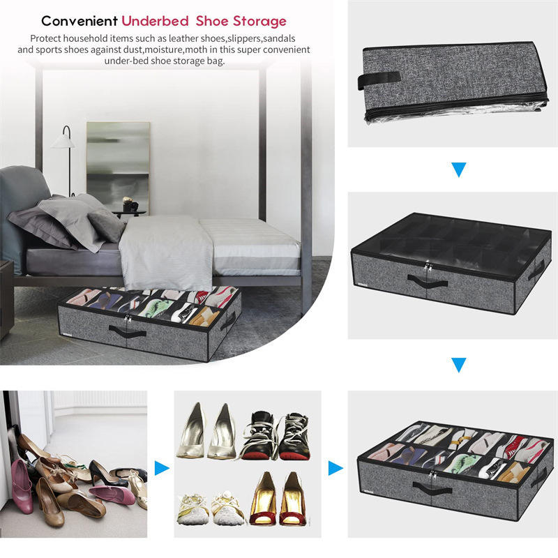 Caja de almacenamiento de zapatos plegable con cremallera, compartimento transparente, organizador apilable para debajo de la cama, gris, 75x60x15 cm