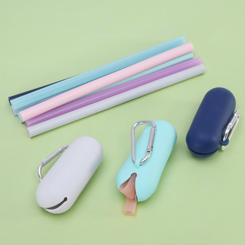 Pajitas de silicona plegables, pajitas reutilizables portátiles para té con leche, fáciles de limpiar, tubo recto W6, tamaño pequeño Plus Max