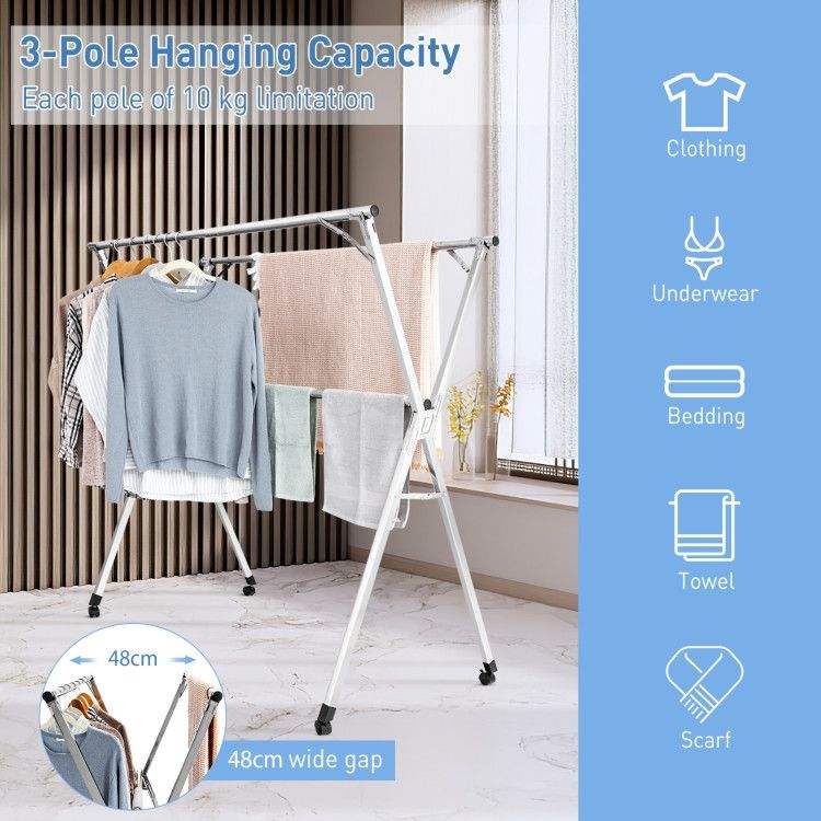 Tendedero Plegable de Acero con 4 Ruedas Universales para Lavandería
