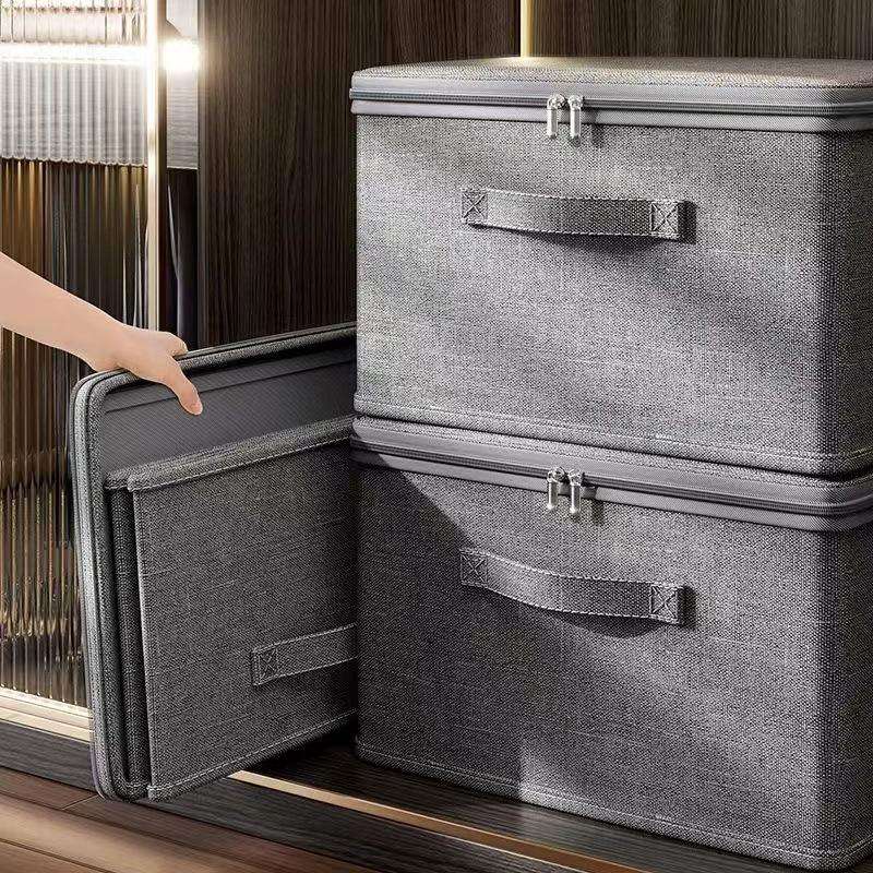 Cajas de Almacenamiento Plegables con Tapas de Cremallera, Contenedor de Tela de Lino, Cesta
