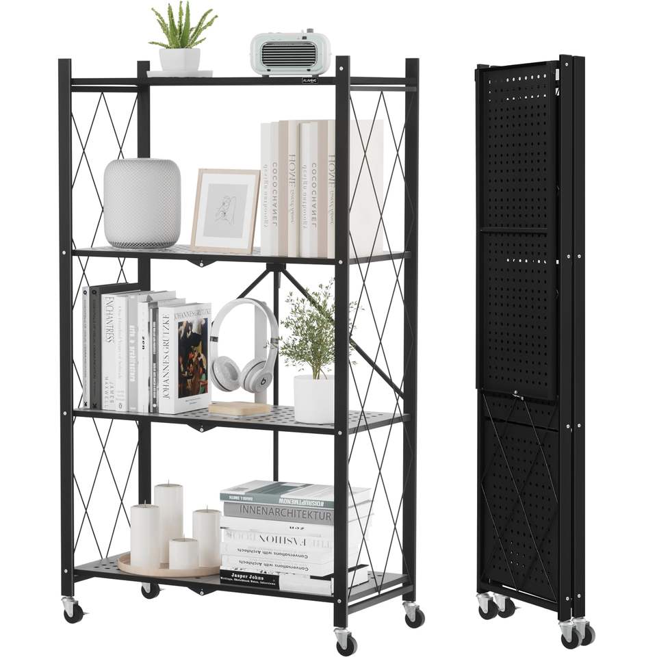 Estantes de Almacenamiento Plegables con Ruedas, Unidad de Estantería de Gran Capacidad, Estante de Alambre de Acero Independiente, Sin Ensamblaje, Organizador