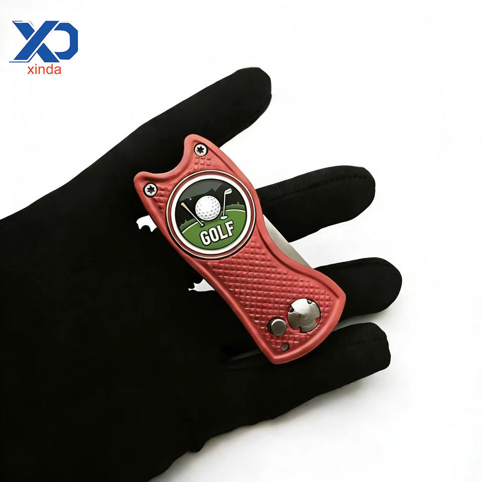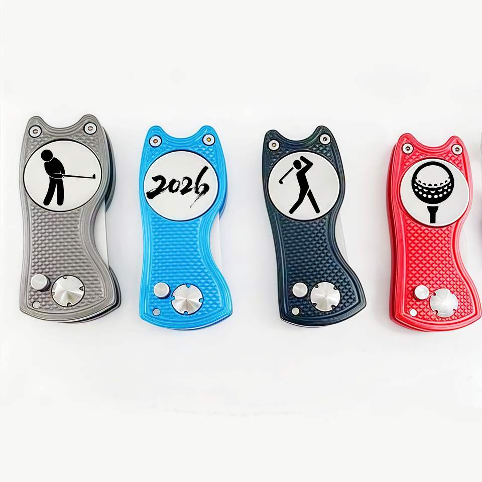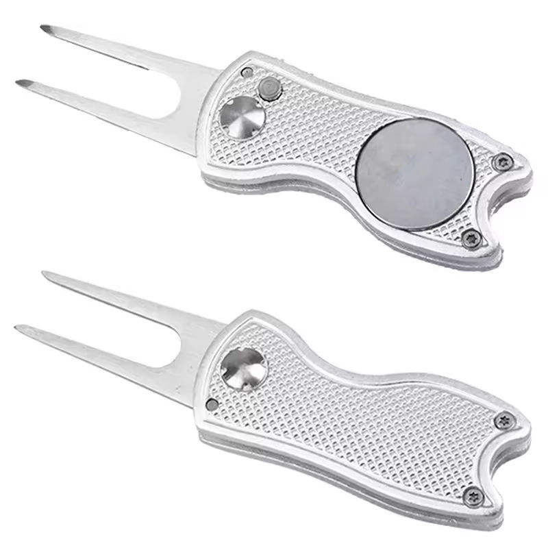 Herramienta de golf plegable tipo navaja para reparar divots, herramienta de reparación de green de metal duradero con marcador de bola magnético