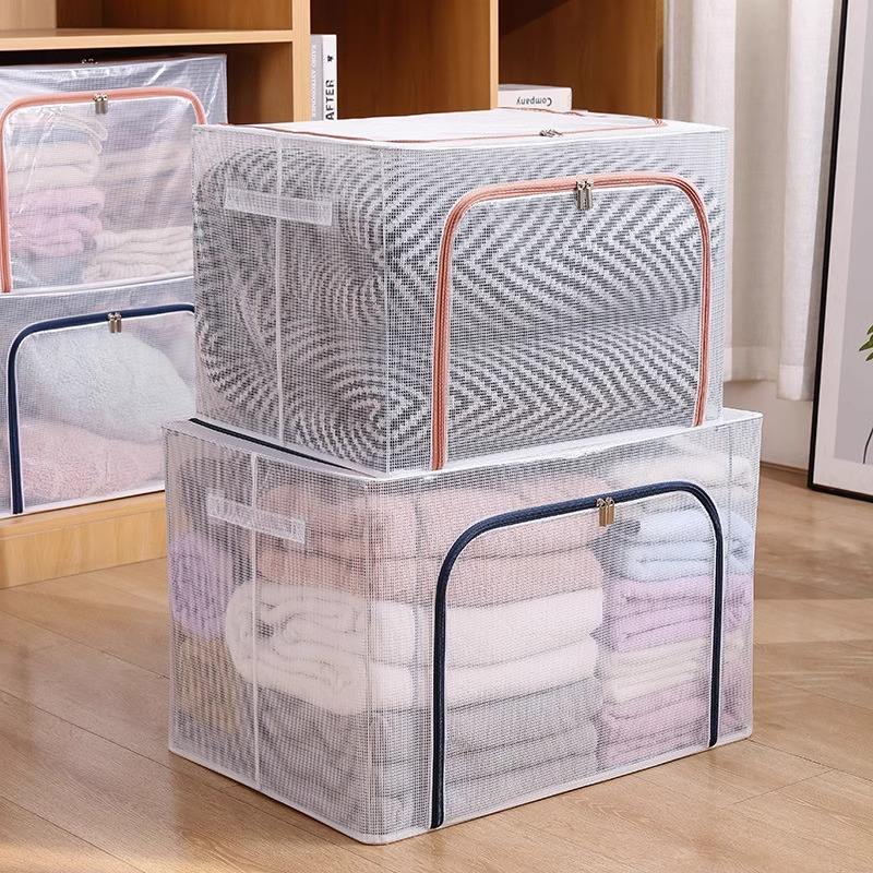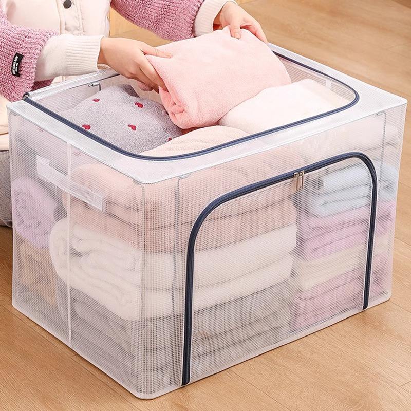 Caja de almacenamiento transparente plegable, rectangular, de gran capacidad, impermeable, con tapa, organizador de ropa, gris oscuro, azul oscuro, raíz de loto