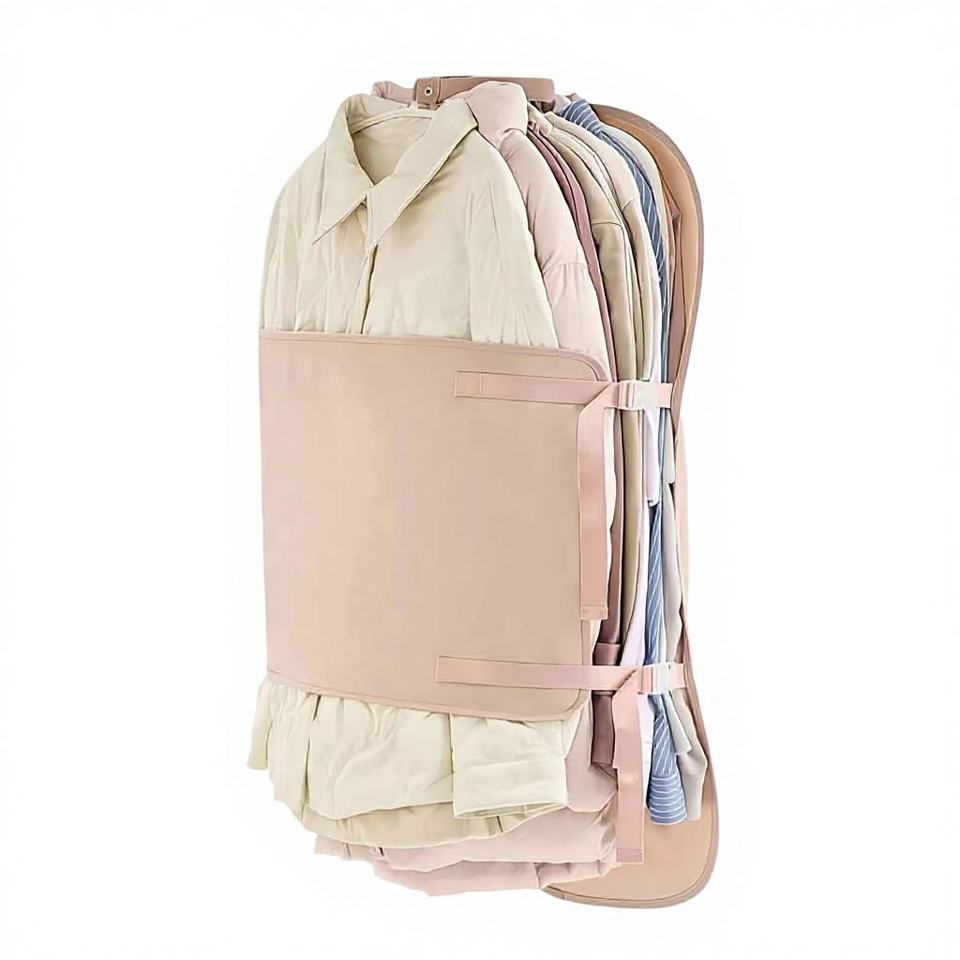 Compresión y almacenamiento de ropa en el armario.