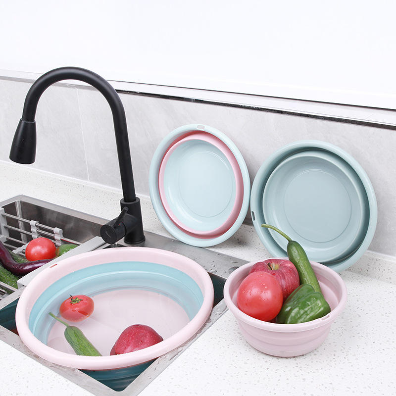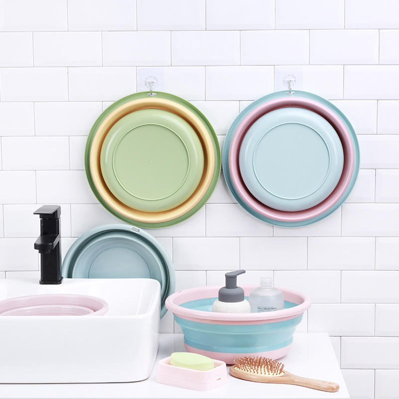 Lavabo Plegable Redondo de Plástico, Portátil y Comprimible, para Viajes, Hogar, Dormitorio Estudiantil, en Colores Rosa, Amarillo y Azul
