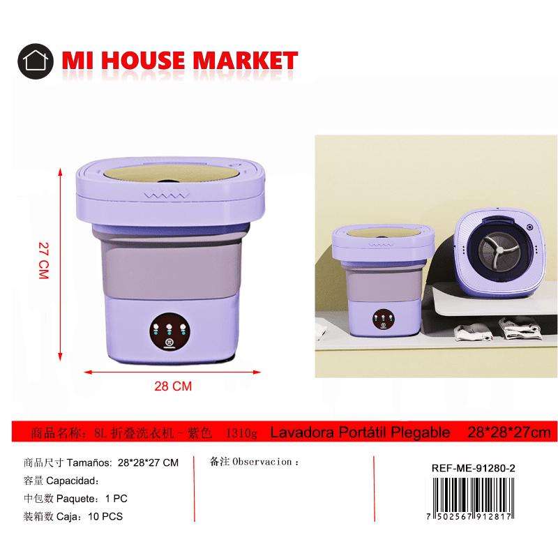 Lavadora Plegable de 8 Litros de Capacidad, Diseño Compacto y Portátil para Viajes y Espacios Pequeños