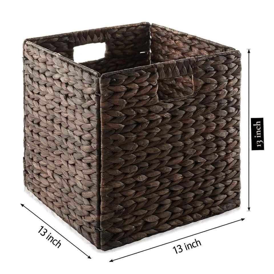 Juego de 4 Cestas Plegables de Jacinto de Agua, Color Marrón Espresso, Cestas de Almacenamiento Tejidas, Organizador Natural Sostenible para Armario u Oficina