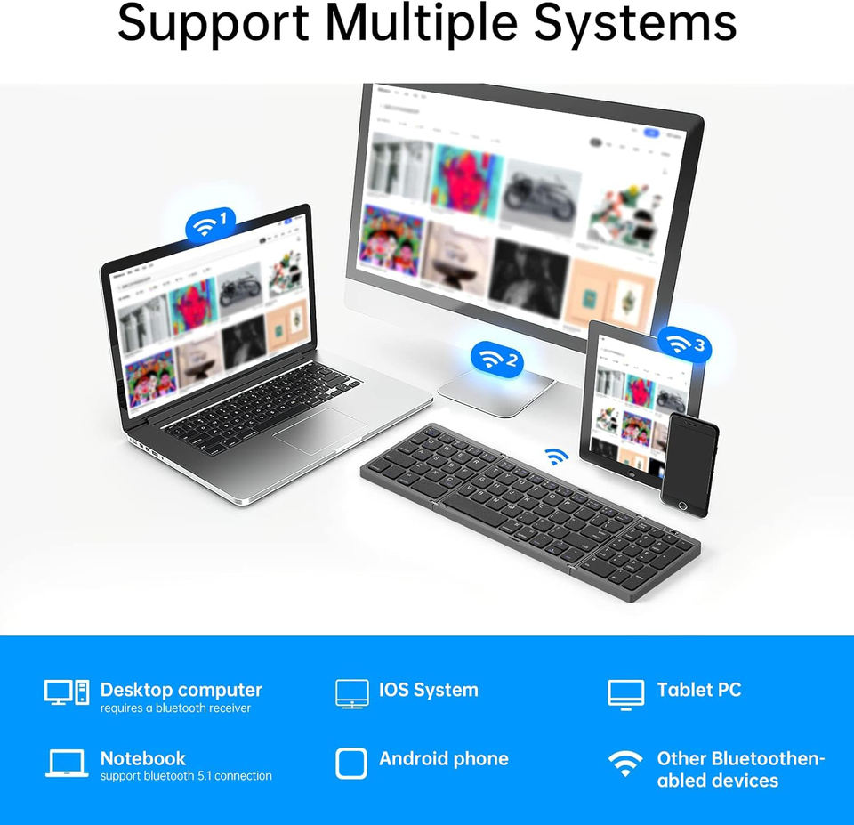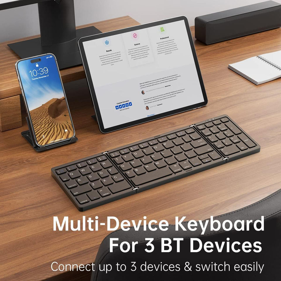 Teclado inalámbrico plegable alemán español francés inglés USB-C recargable para iPad, portátil, tableta, teclado numérico portátil para viaje