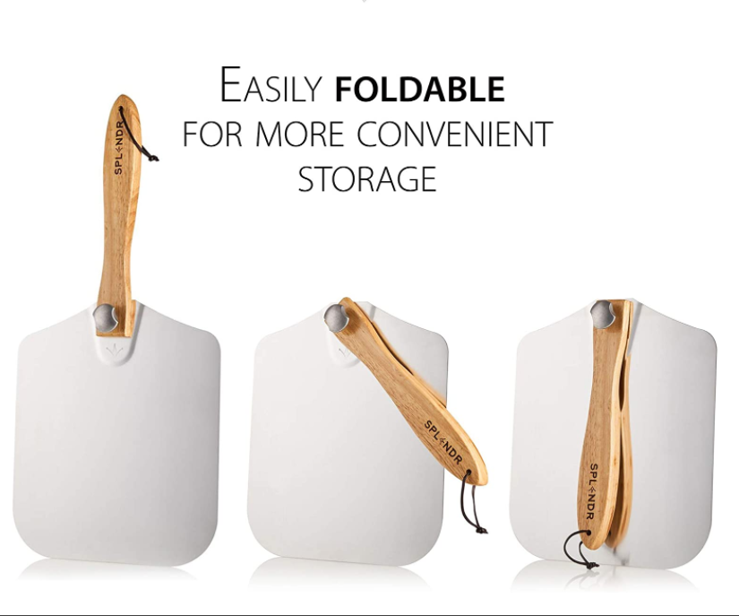 Pala plegable con mango de madera para pizza, cortador de Pizza, espátula de Metal y aluminio, giratoria, pala de pelar