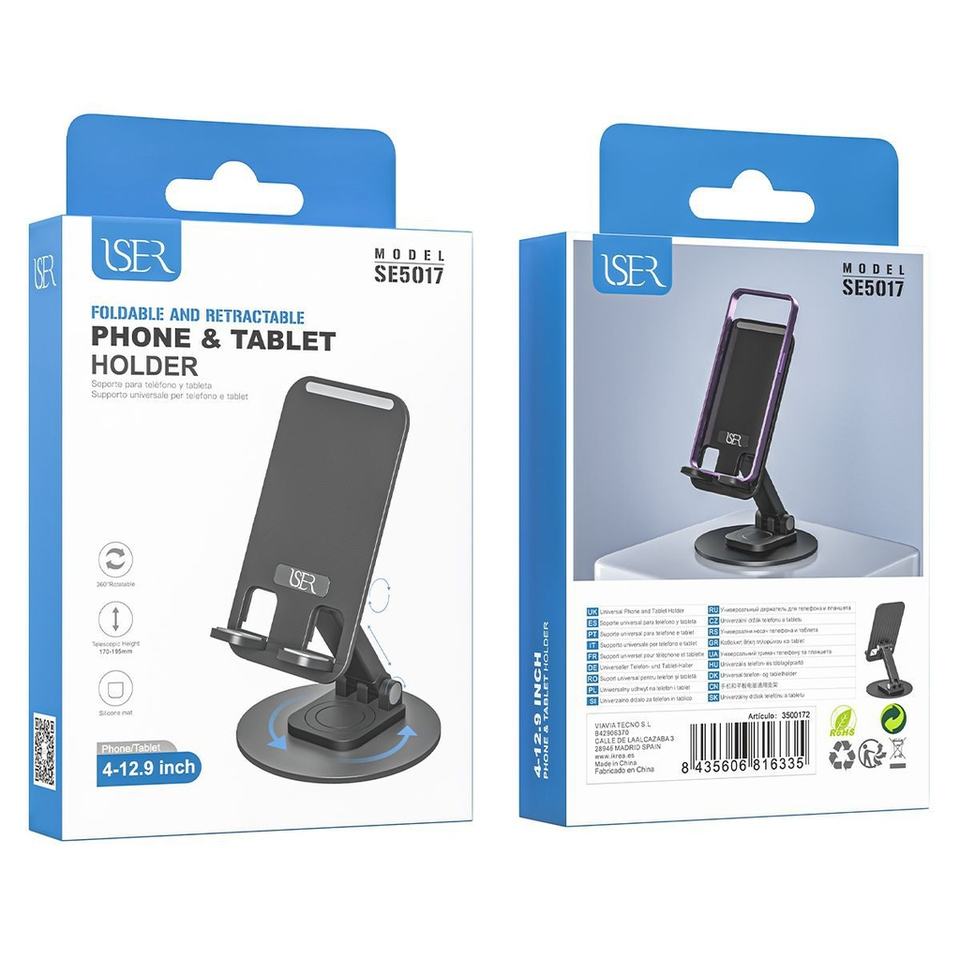 Soporte plegable y retráctil para teléfono móvil y tableta de 4 a 12,9 pulgadas, negro-Accesorio para dispositivos