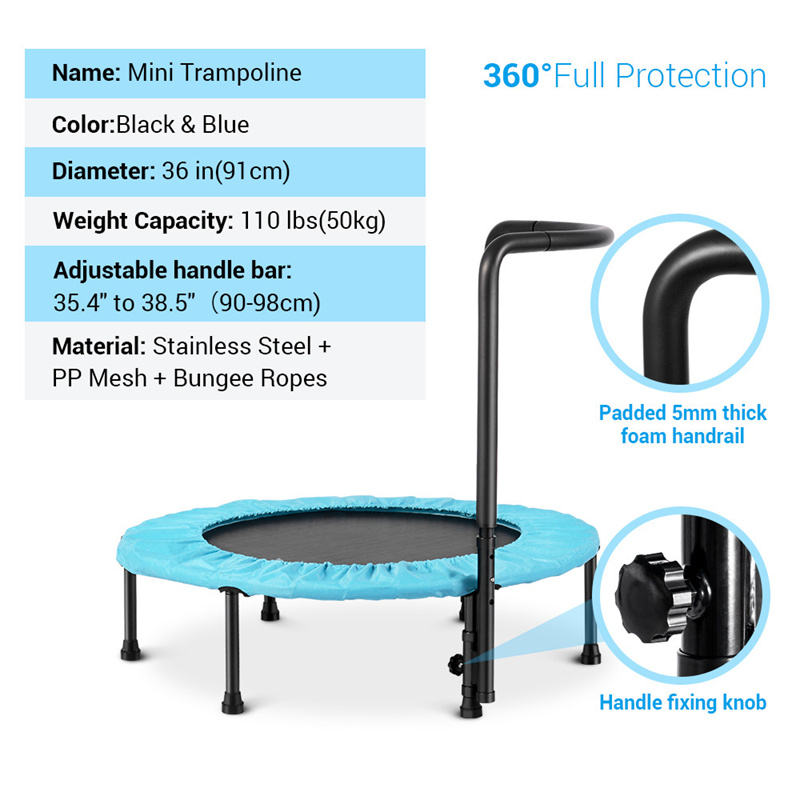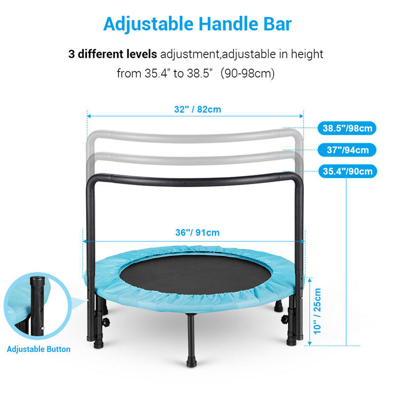 Trampolín plegable de 36 pulgadas con mango ajustable para niños, cama elástica para saltar con cubierta, minitrampolín