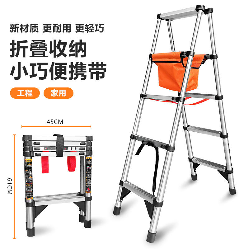 Escalera Plegable Tipo A de 4 Peldaños Telescópica Portátil para Uso Doméstico e Industrial
