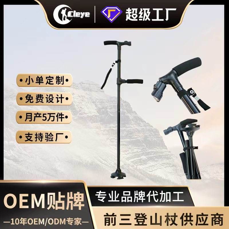 Bastón plegable con luz, bastón de aleación de aluminio con doble mango para personas mayores, diseño multifuncional de cuatro patas