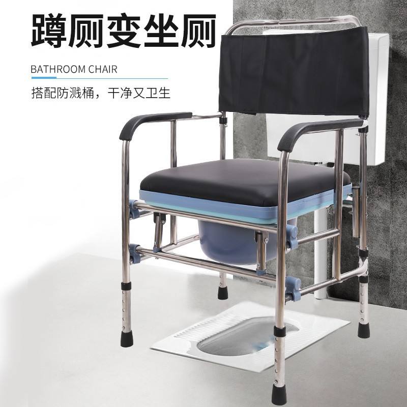 Silla de inodoro plegable de acero inoxidable con respaldo alto, silla de inodoro portátil para ancianos, discapacitados y mujeres embarazadas