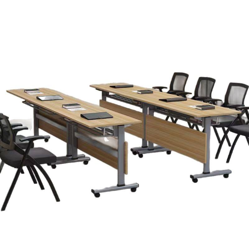 Mesa de Conferencia Plegable, Escritorio Modular Móvil, Color Madera Natural, Conjuntos Escolares, Sala de Estudio, Espacio Comercial, Duradera