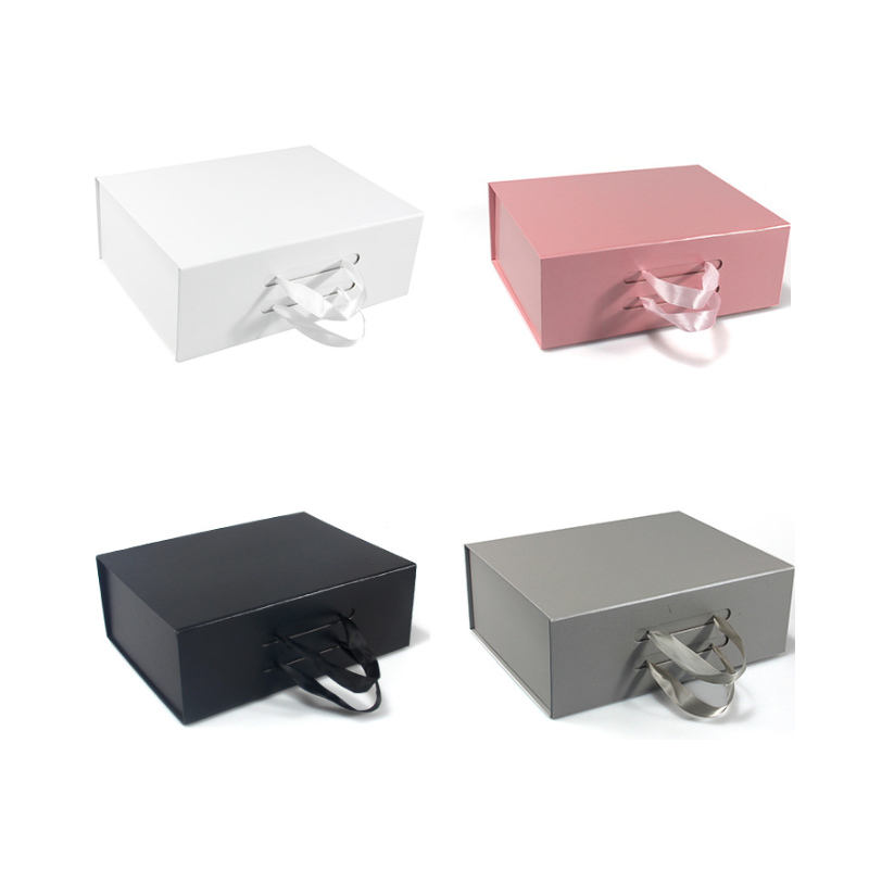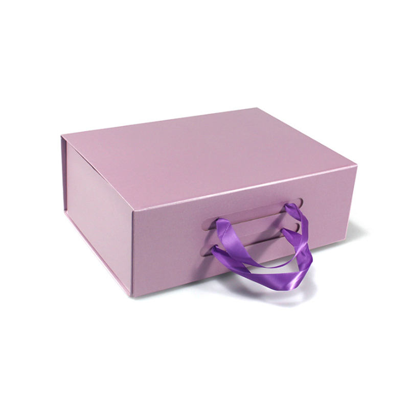 Caja de Regalo Plegable Rectangular con Tapa Magnética Abatible, Caja de Almacenamiento con Asa, Logotipo Personalizable, Rosa, Morado, Negro, Blanco, 2 Capas