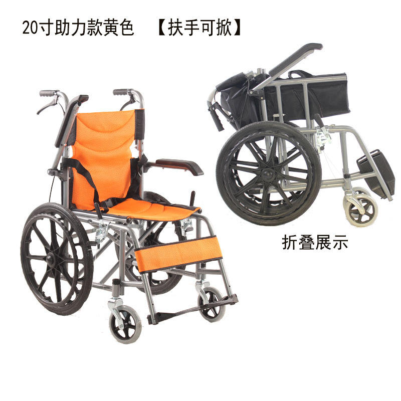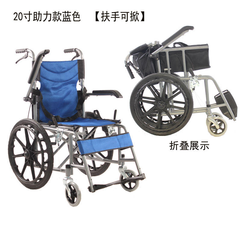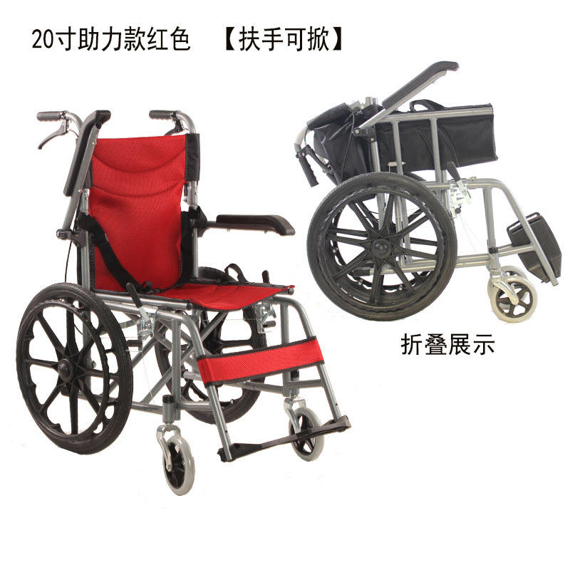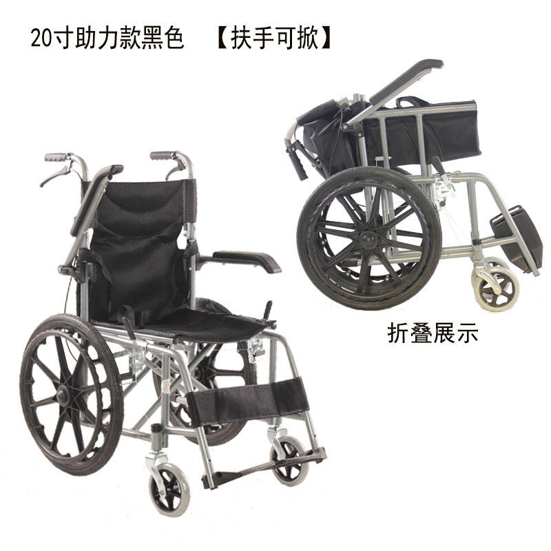 Silla de ruedas plegable ligera de 20 pulgadas con reposabrazos ajustables para ancianos y discapacitados