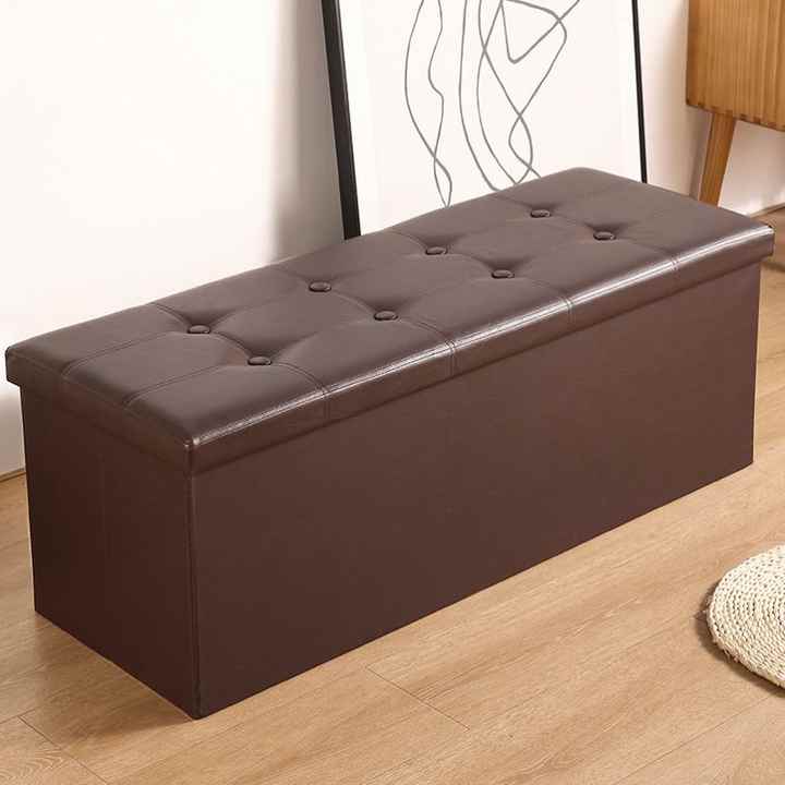Banco Otomano Plegable con Almacenamiento Oculto de 90L, Reposapiés de Cuero, Taburete con Tapa Abatible para Sala de Estar, Dormitorio o Entrada