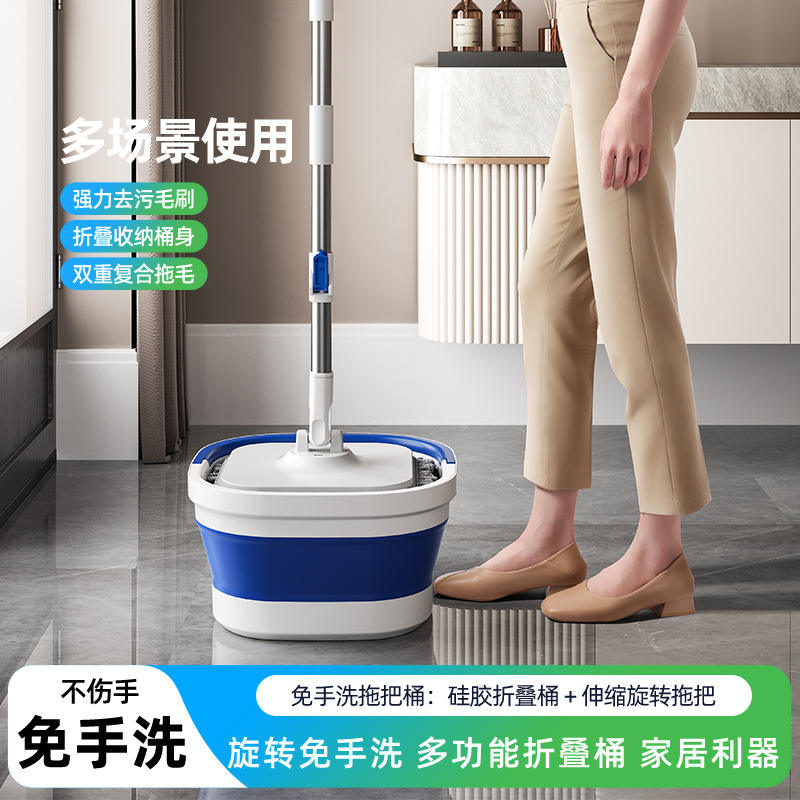 Mopa Giratoria Plegable de Microfibra Redonda de 1.4 kg con Sistema de Secado por Centrifugado y Uso sin Manos para Limpieza del Hogar