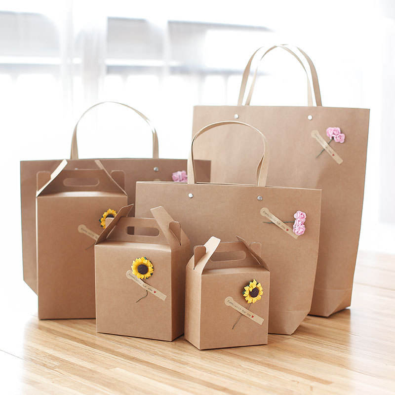 Tipo plegable caja de papel Kraft con mango de la caja de papel para embalaje de regalo marrón tratar caja de papel