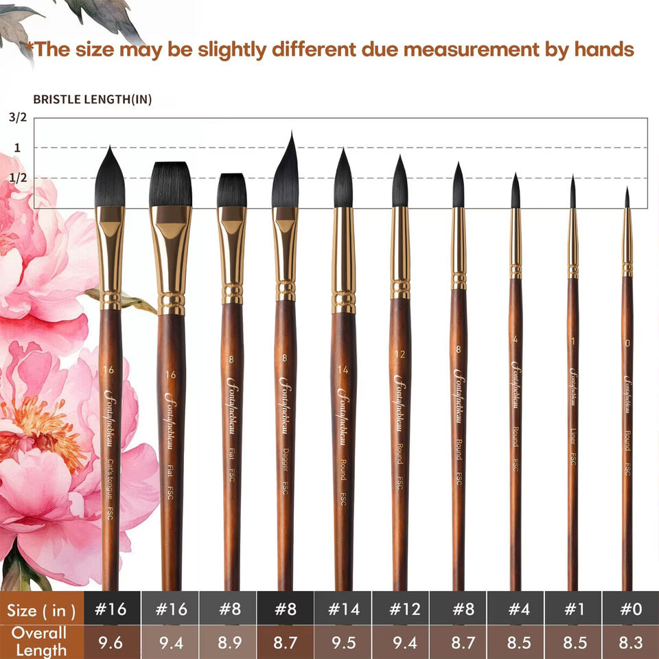 Product name:Flat Round Pointed Bristle Watercolor Paint Brush