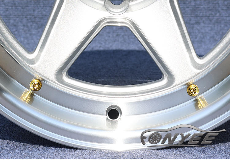 Rines Fonyee OEM/ODM de 5 Radios, 15x8, 5x113.1 PCD, Estilo JDM, Diseño S1, Rines Profundos con Remaches Dorados para Automóviles de Pasajeros