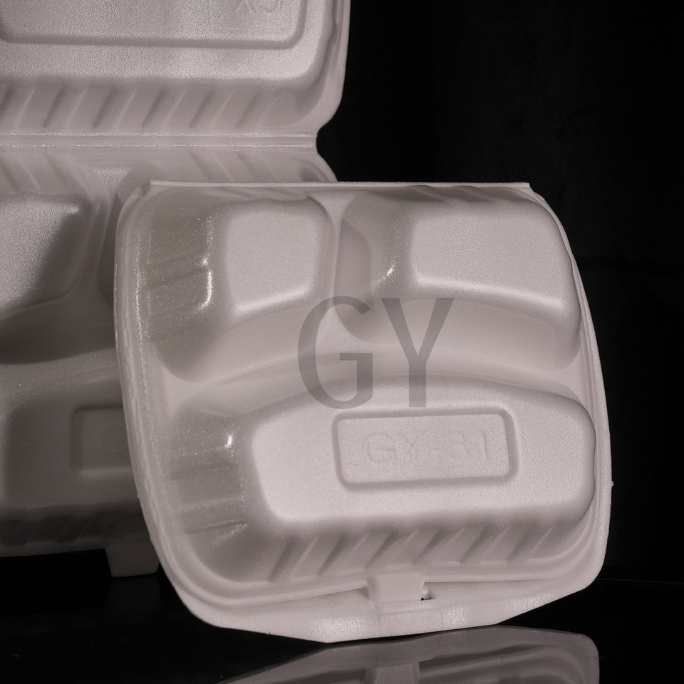Caja de Comida Desechable de Espuma, Contenedores de Alimentos de Espuma, Caja de Tres Compartimentos, Caja Rectangular, Caja de Desayuno, Caja de Comida Rápida