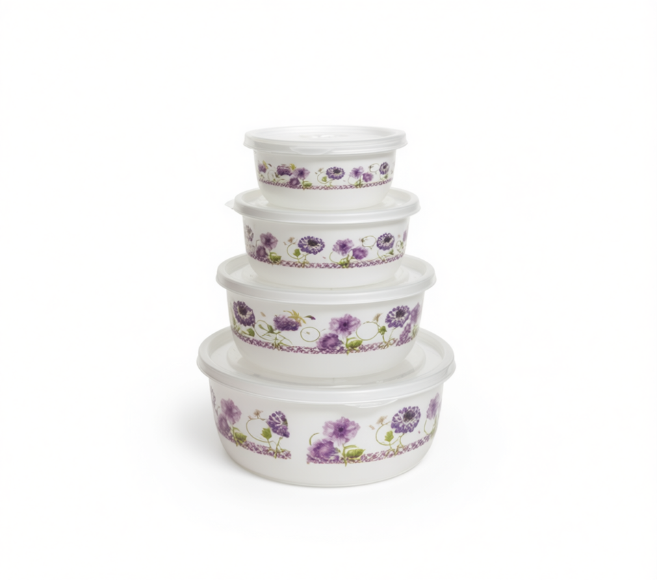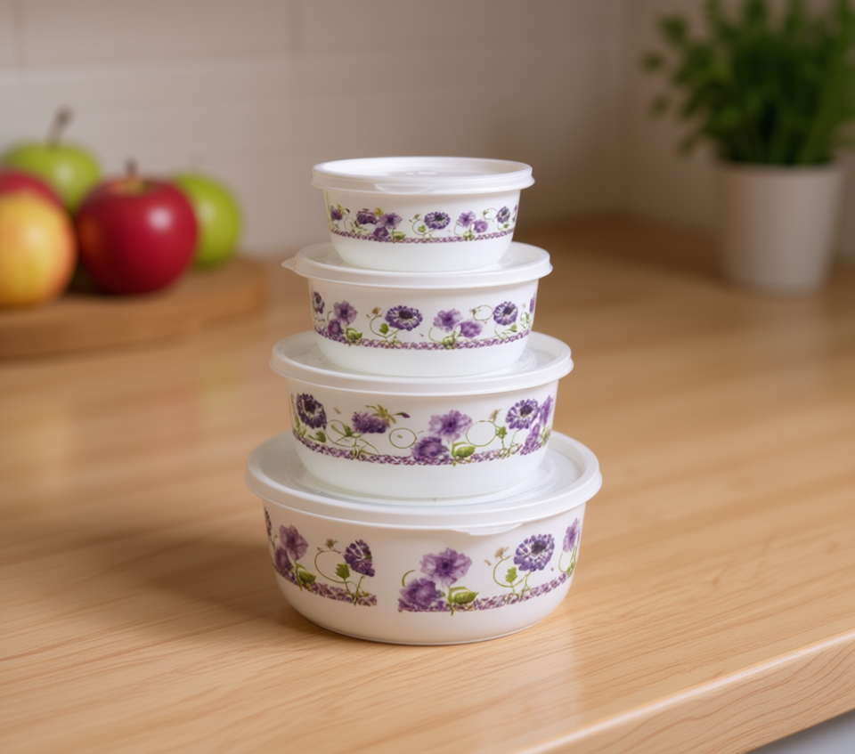 Recipientes para Alimentos, Juego de 4 Piezas de 300 ml, 500 ml, 900 ml y 1.5 l, Apilables con Tapa, Diseño Floral, Juego de Almacenamiento para Cocina