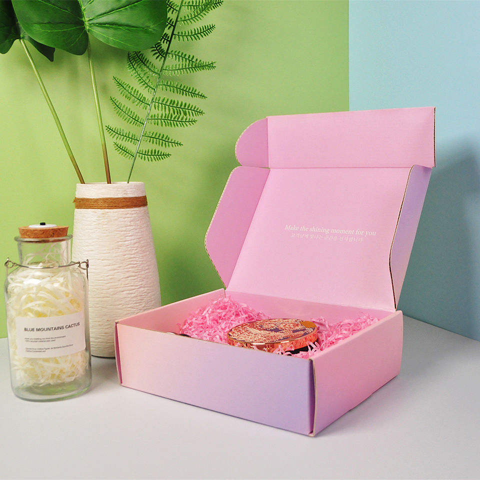 Caja de regalo plegable personalizada, embalaje de cajas corrugadas rosas con logotipo