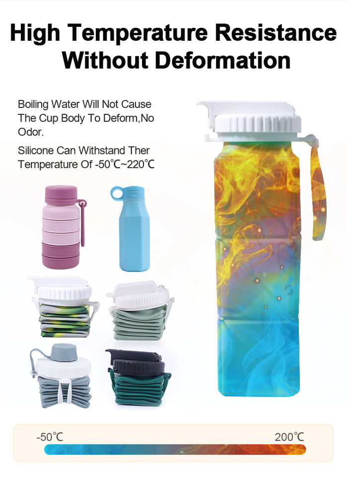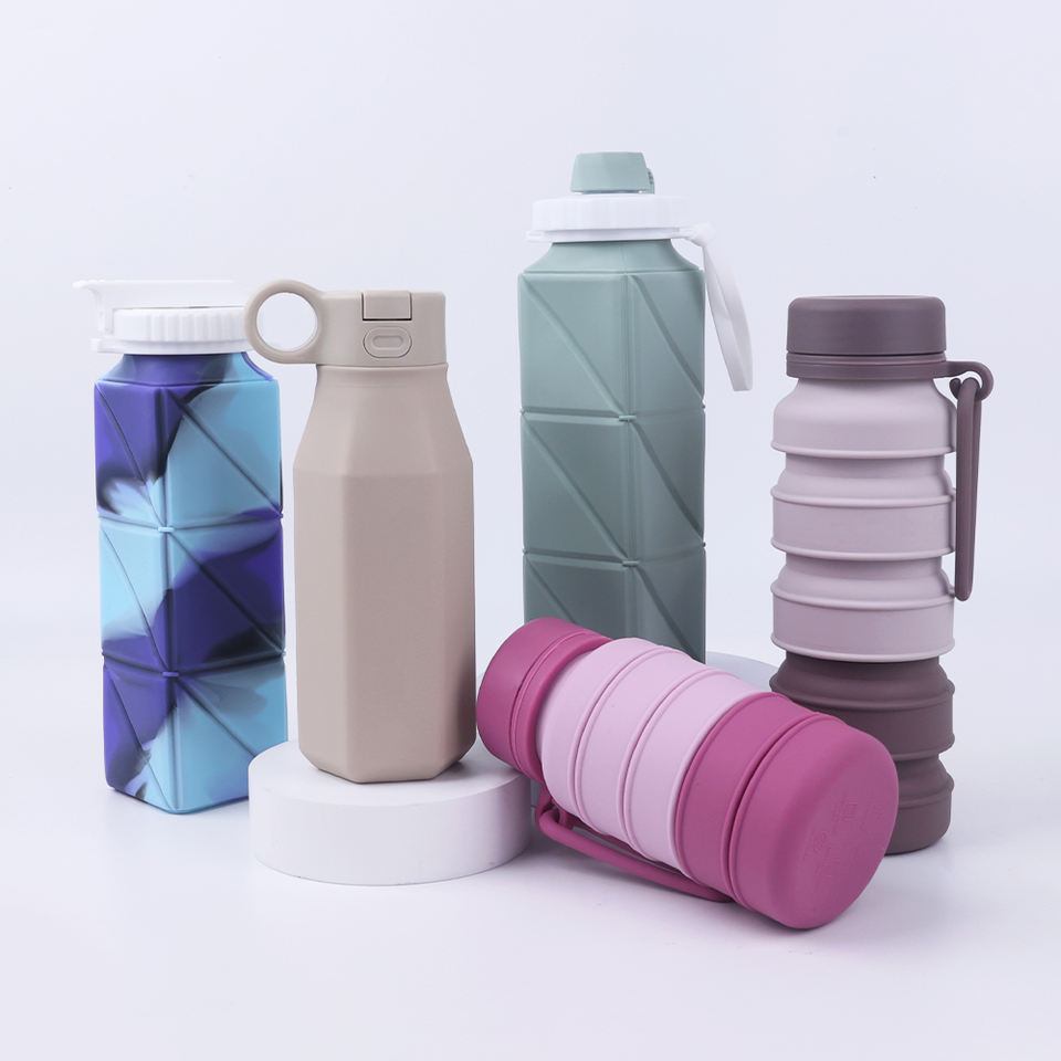 Kit de botella deportiva de viaje de goma de silicona personalizada sin Bpa de grado alimenticio, botella de agua, fabricante de botellas de silicona plegables con pajita