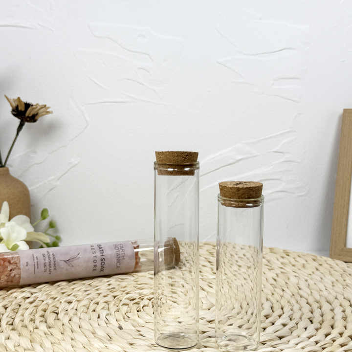 Tubo de Vidrio Transparente de Grado Alimenticio con Tapa de Corcho para Almacenamiento de Hierbas, Especias y Té de Hojas Sueltas