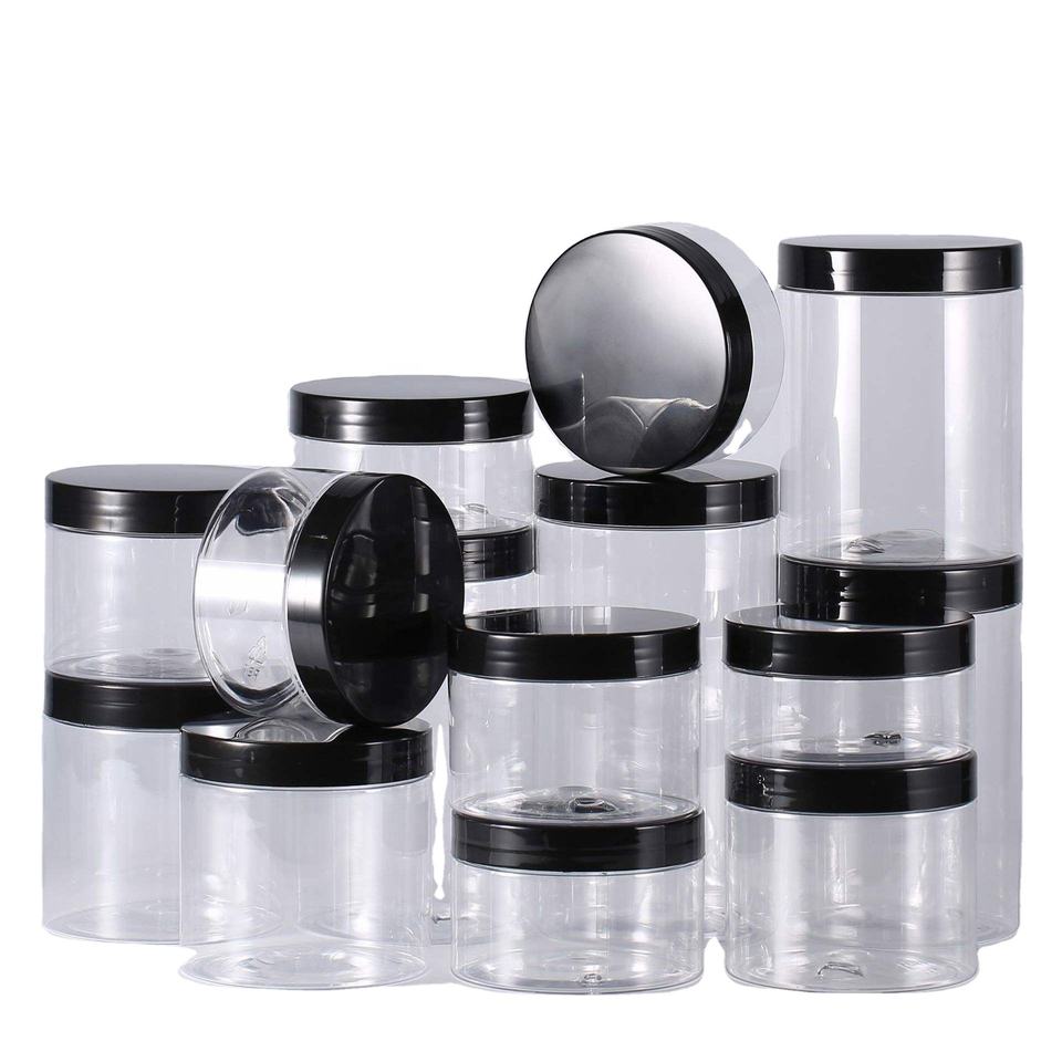 Envase Transparente de PET de Grado Alimenticio, Frasco de Boca Ancha con Tapa de Plástico Negra, 150ml 250ml 280ml 350ml 400ml 500ml