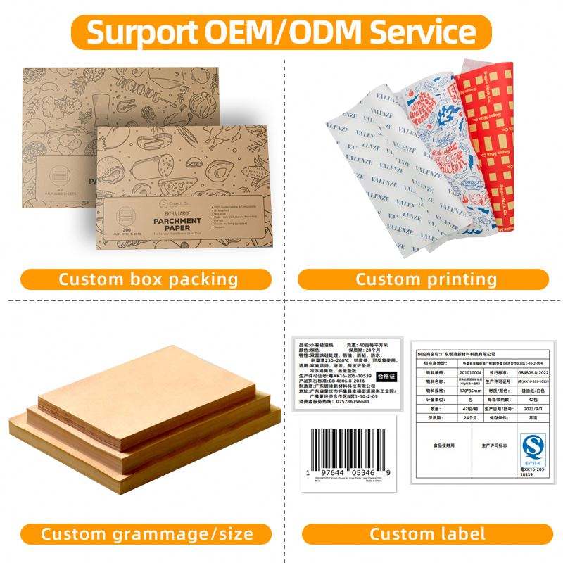 Hoja de papel antigrasa personalizada de grado alimenticioTipo de papel