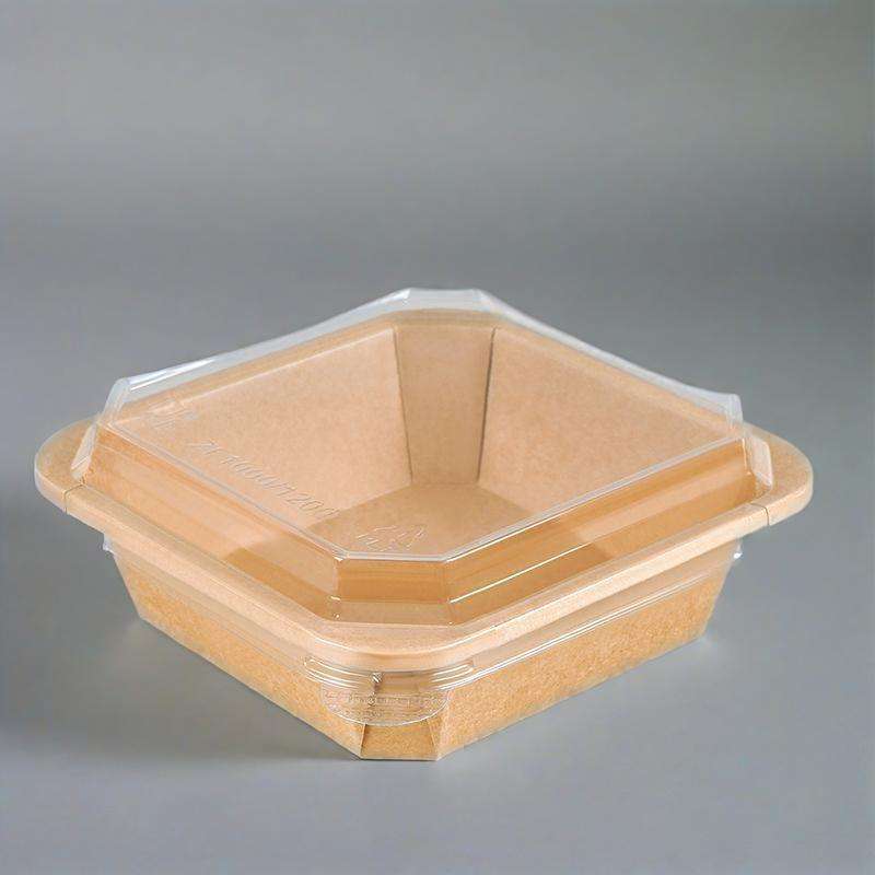 Caja Rectangular Desechable para Ensaladas, Personalizada con Impresión, de Papel Kraft, con Tapa, para Llevar, de Grado Alimenticio