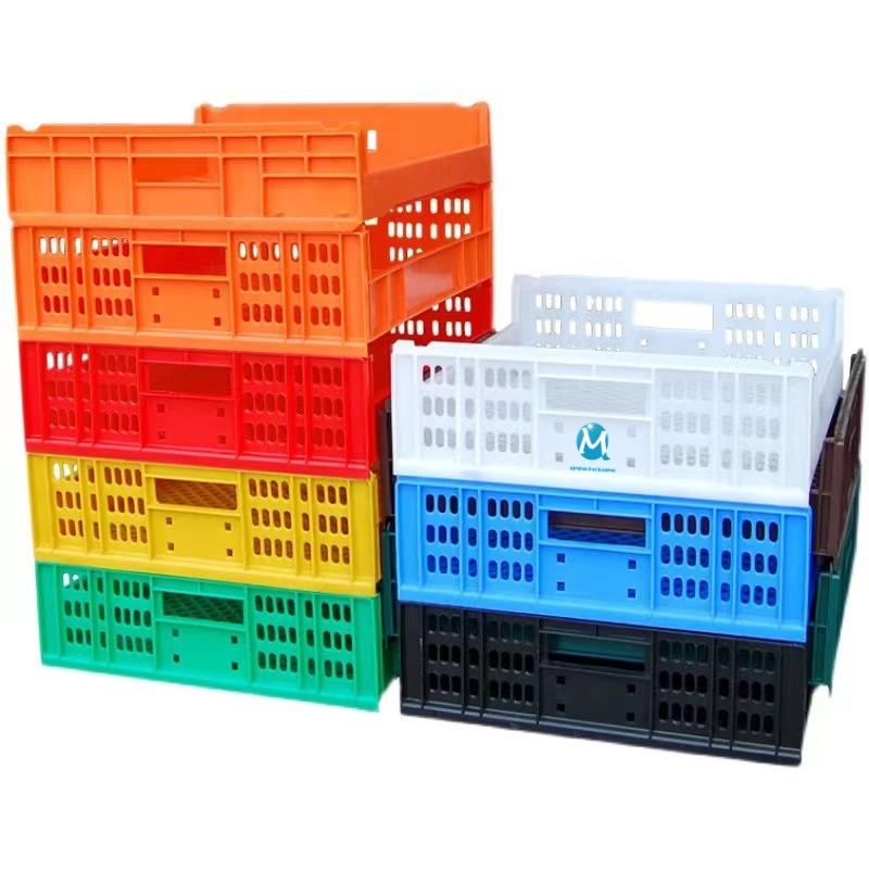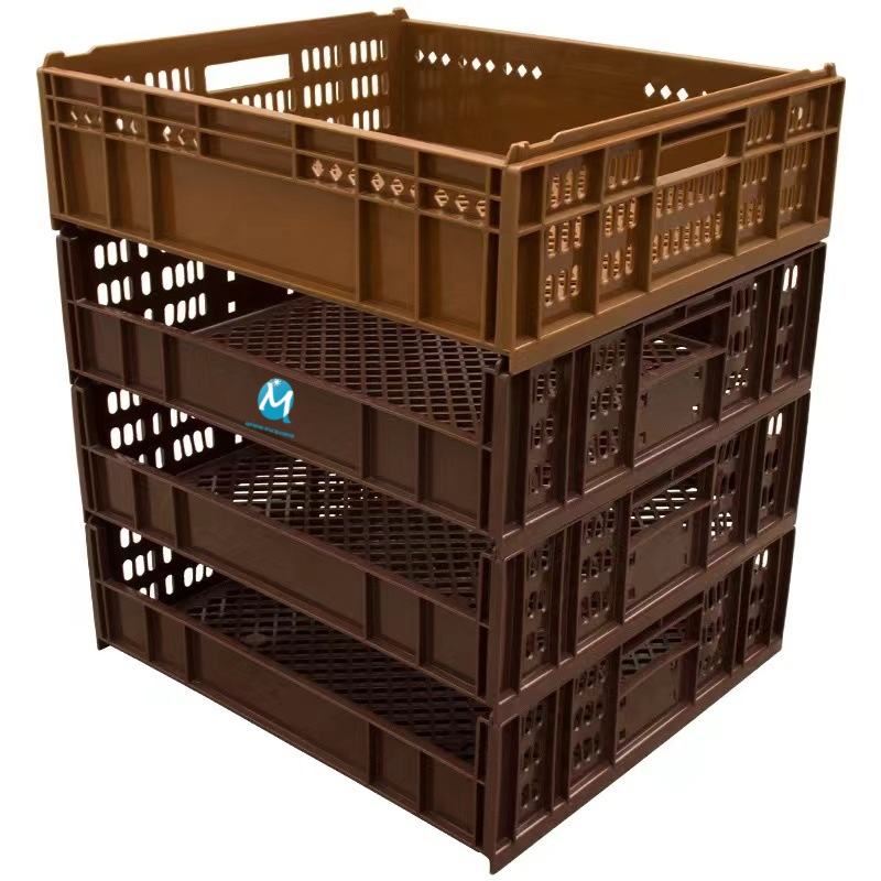 Caja móvil apilable de plástico HDPE de calidad alimentaria, caja de almacenamiento plegable con estilo de malla para pan, caja de transporte pequeña y usada