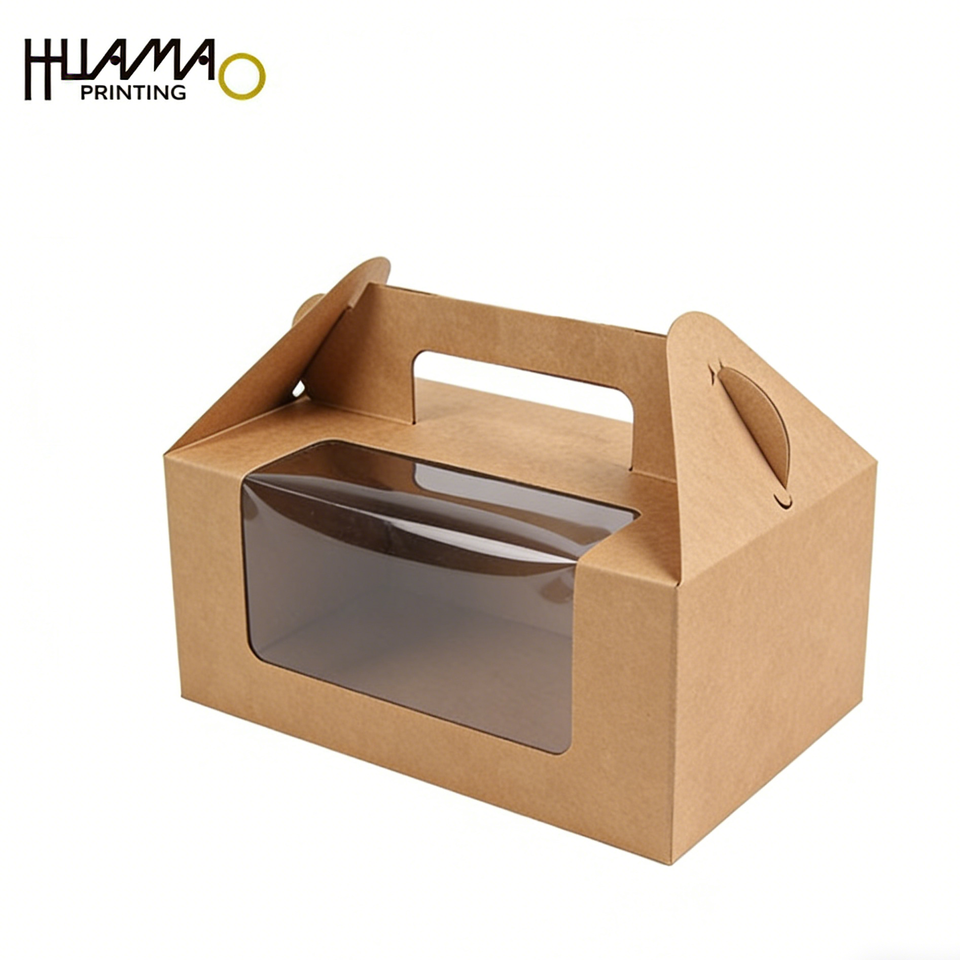 Caja para pasteles de papel kraft de calidad alimentaria, caja portátil para pasteles con asa y ventana, caja de embalaje desechable para pastelería y tienda de postres