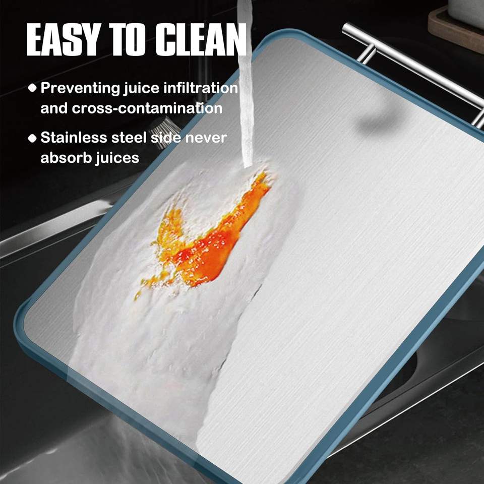 Bloques de servicio para cortar PP antideslizantes de grado alimenticio, fáciles de limpiar, 2 en 1, tabla de cortar de acero inoxidable de doble cara para Cocina