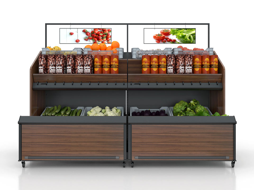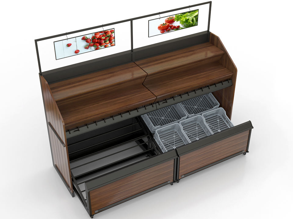 Estantes de exhibición de PVC para verduras y frutas, calidad alimentaria, con decoración de madera y cajón