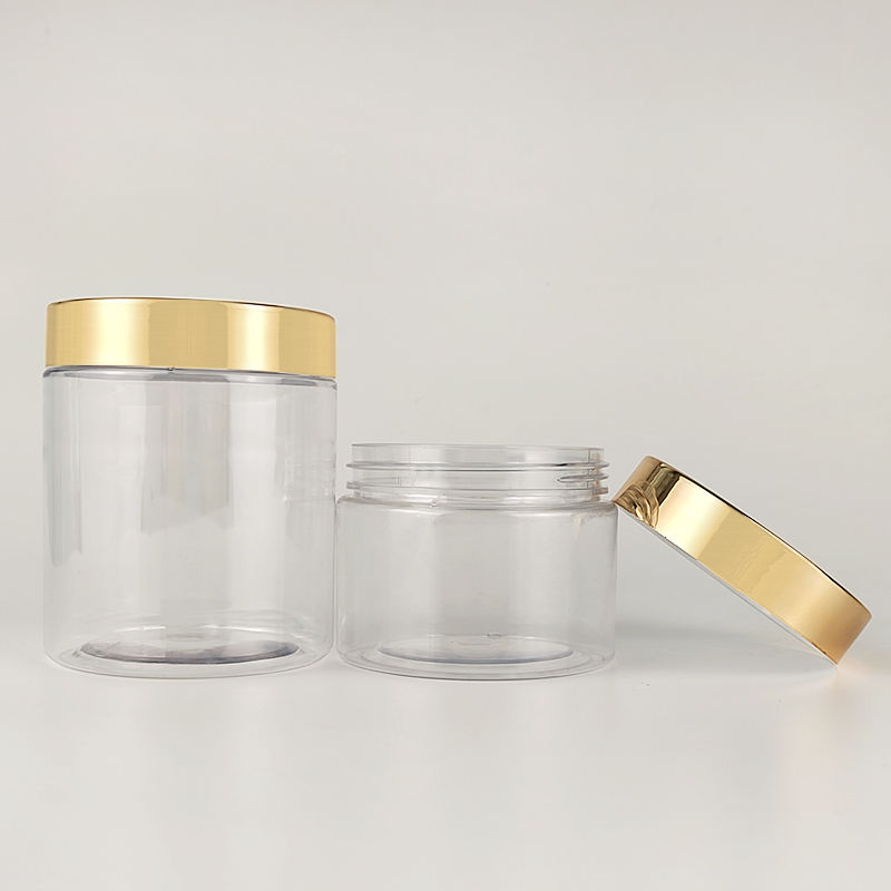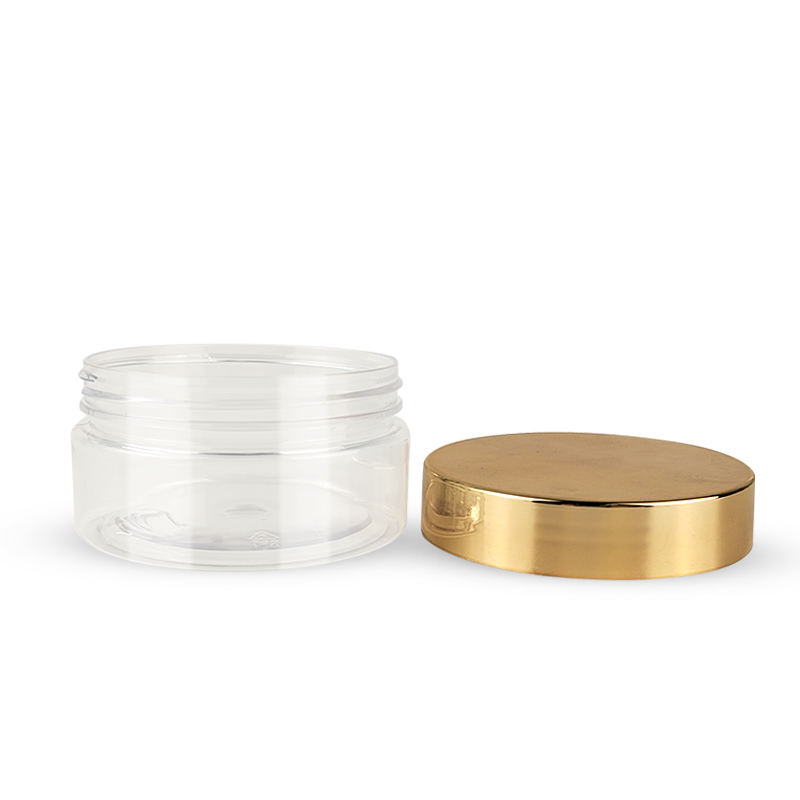 Tarros de Plástico de Grado Alimenticio con Tapa Dorada Brillante y Cierre de Rosca, Capacidad de 50g, 100g, 120g, 150g, 200g, 250g, 500g, Tarro de PET para Cremas y Mascarillas Faciales de 8 oz