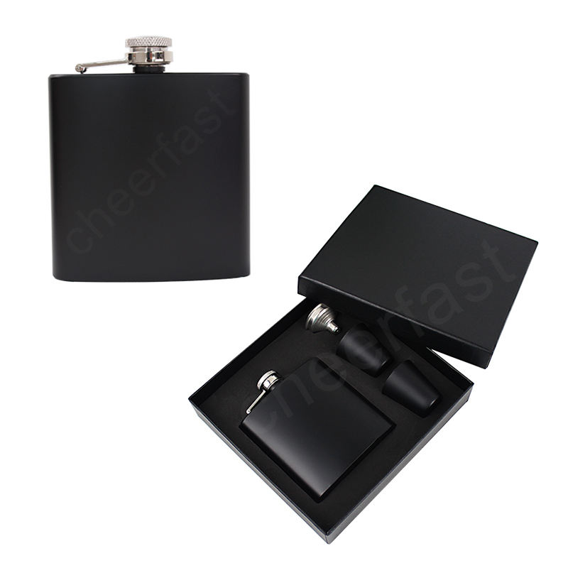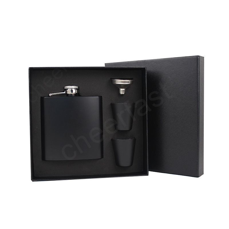 Termo reutilizable de acero inoxidable para uso alimenticio, frasco de cadera de Color negro con embudo y 2 tazas