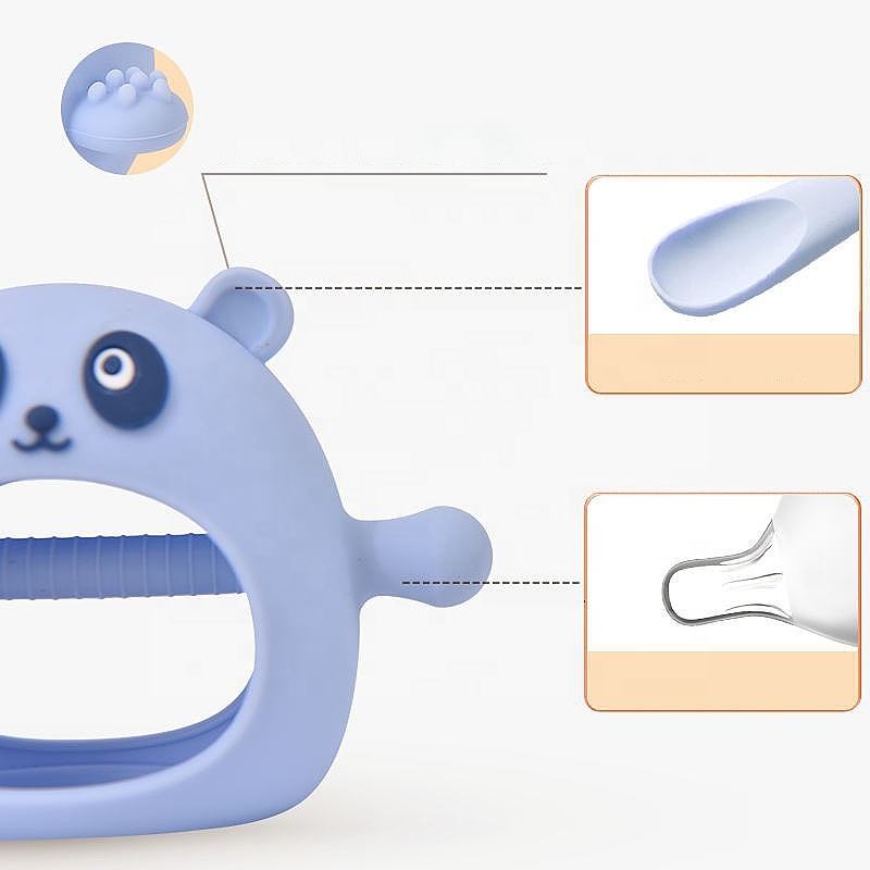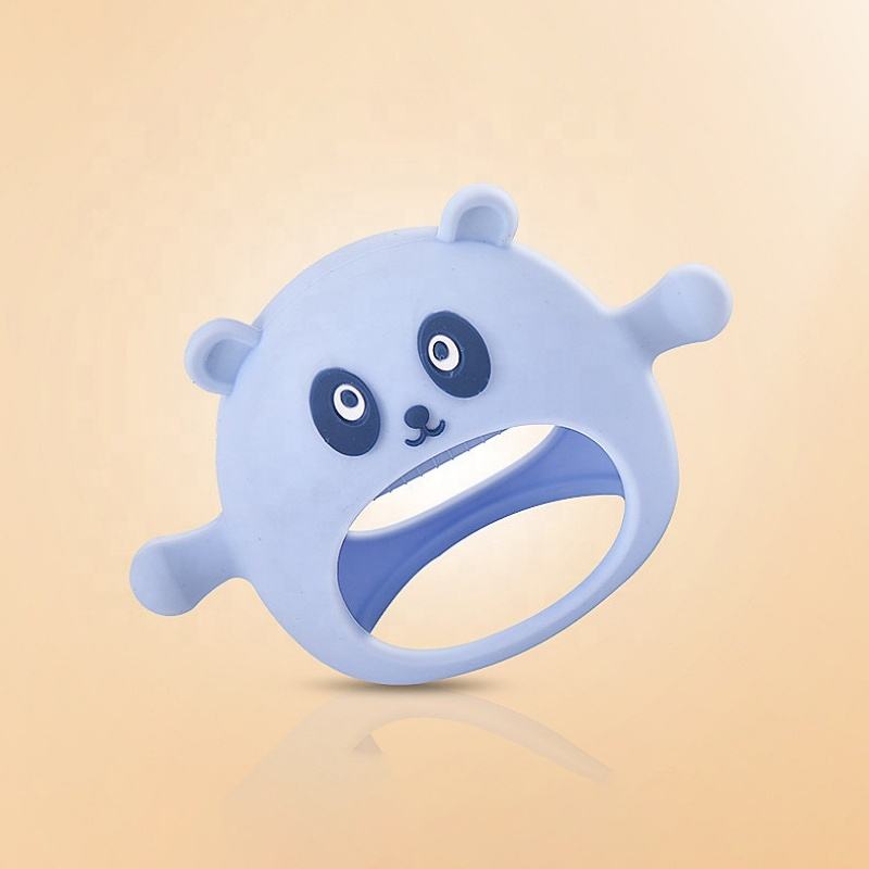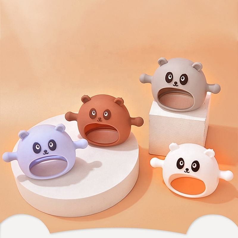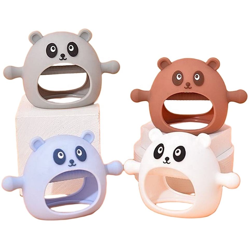 Manopla de dentición de silicona de grado alimenticio, juguete masticable de silicona, lindo diseño de Panda, guantes de silicona para bebé, mordedor calmante