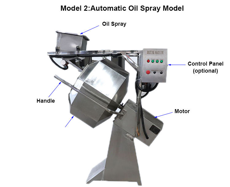 Mezcla de alimentos Sabor Dry Machin Powder Tumbler Snack Condimento Máquina de recubrimiento Plástico