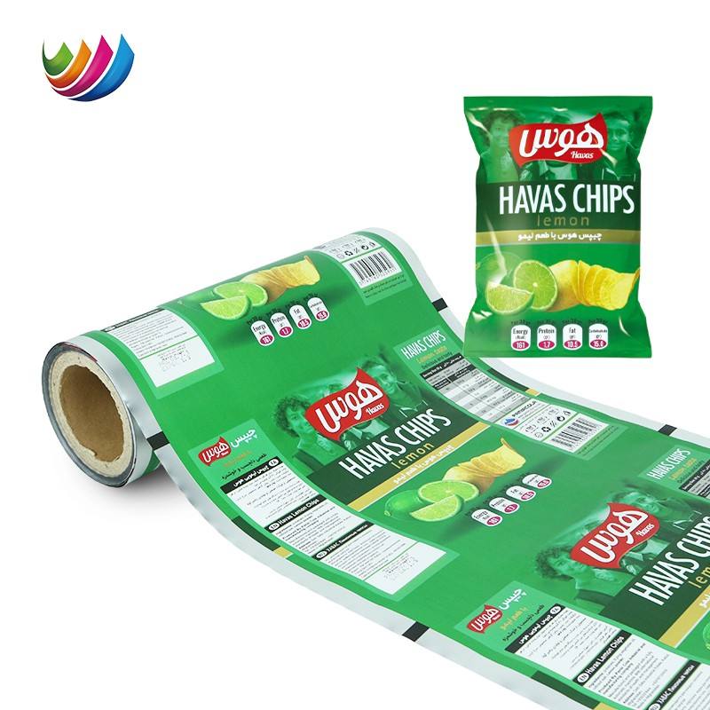 Fábrica de impresión de envases de alimentos de plástico personalizado Bopp laminación térmica rollo de embalaje de alimentos película para patatas fritas