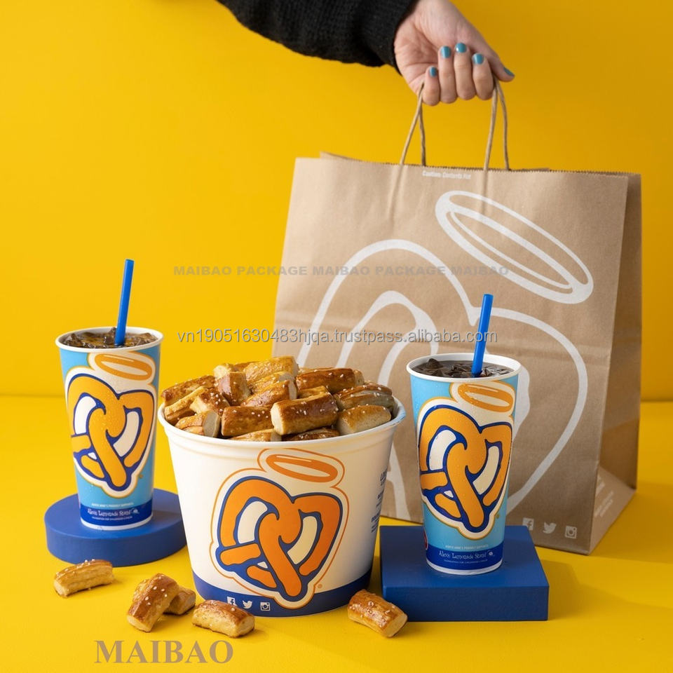 Envasado de comida rápida: bolsa para llevar marrón de papel Kraft impresa personalizada, respetuosa con el medio ambiente y de grado alimenticio para embalaje